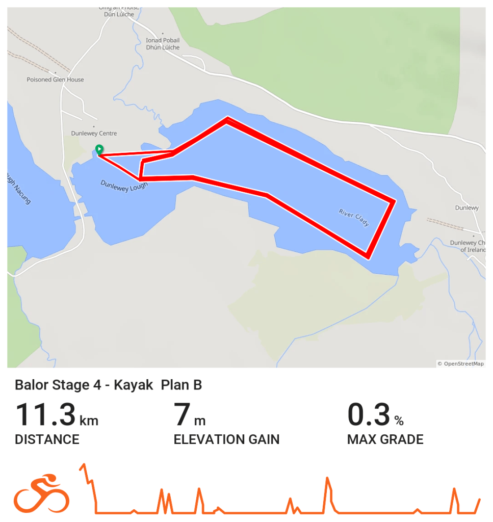 Stage 4 takes competitors on a scenic kayak stage on Dunlewey Lake. Competitors will enter via the slipway at the Dunlewey Centre and complete three 3.6km laps before returning to TA2.
